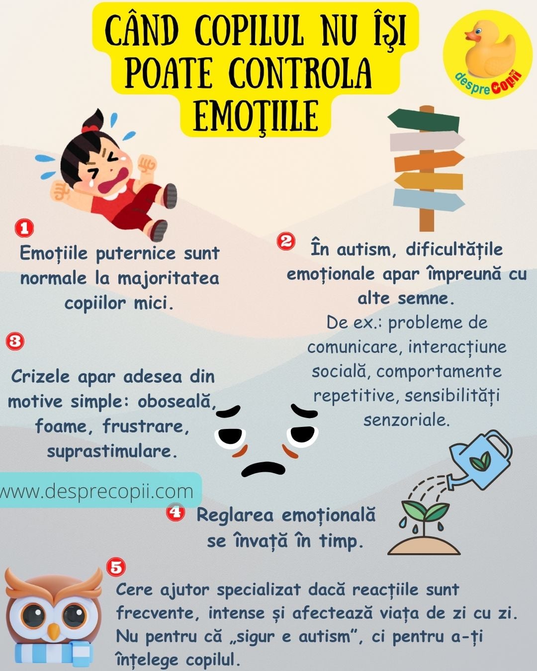 Atenție: imposibilitatea de a controla emoțiile, singură, NU este un criteriu de diagnostic pentru autism.