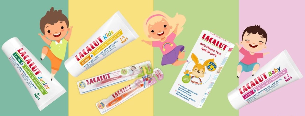 👉 LACALUT® Kids (2-6 ani): ajută dinții de lapte să fie puternici și sănătoși.