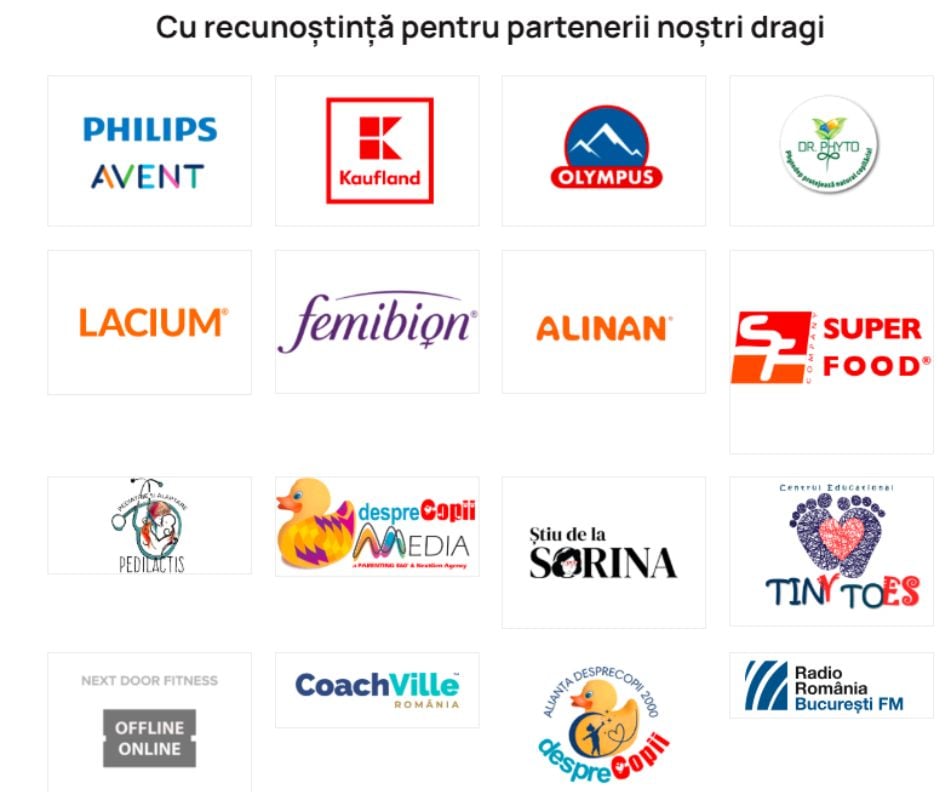 De asemenea, Dr. Phyto România, Lacium, Femibion, Alinan, Super Food, PediLactis, Știu de la Sorina, Next Door Fitness, CoachVille România și Centrul Educațional Tiny Toes au oferit produse